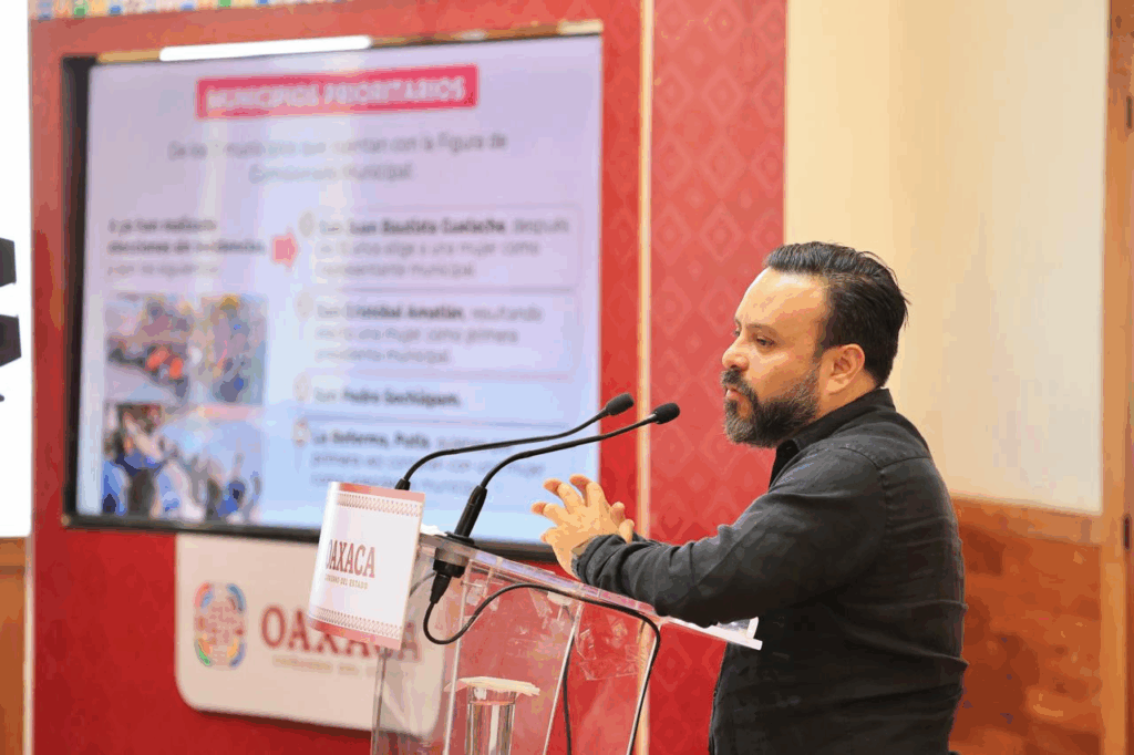 El funcionario resaltó la elección en San Juan Bautista Guelache, donde después de 15 años, la comunidad ejerció nuevamente su derecho al voto, eligiendo a una mujer como presidenta municipal.